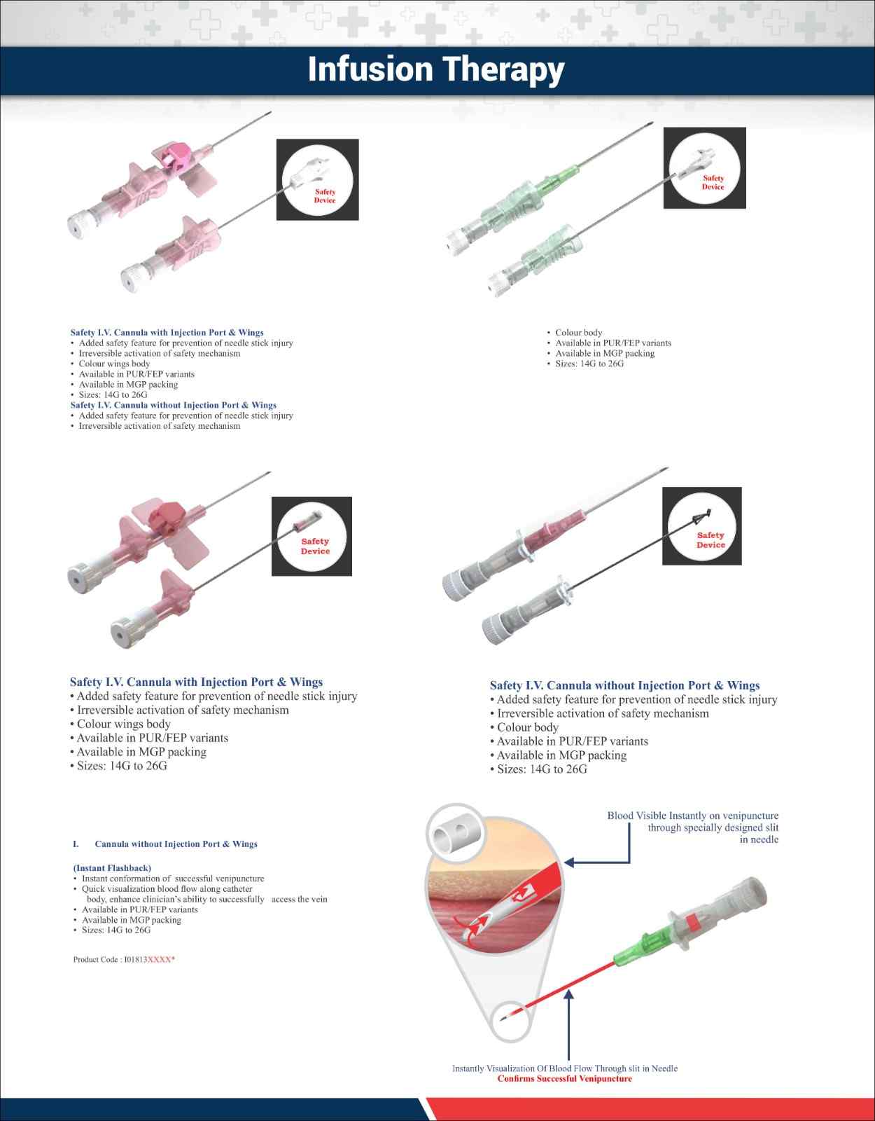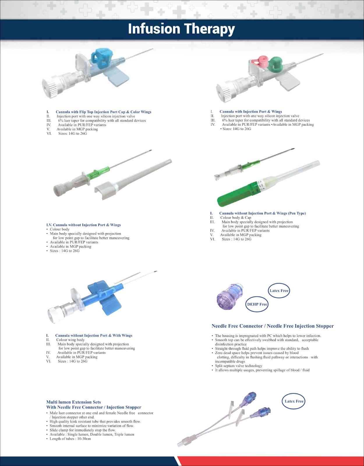- Also available with thumb support “Y” injection port and Needle free “Y” Site