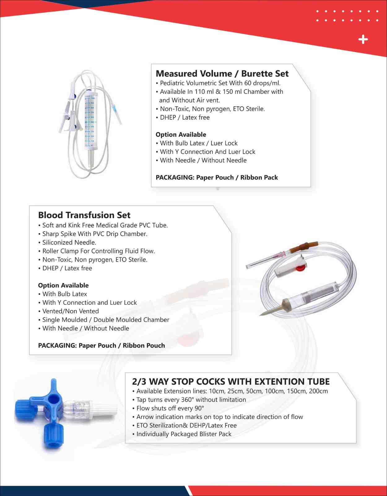 - Male luer connector at one end and female Needle free connector / Injection stopper other end
