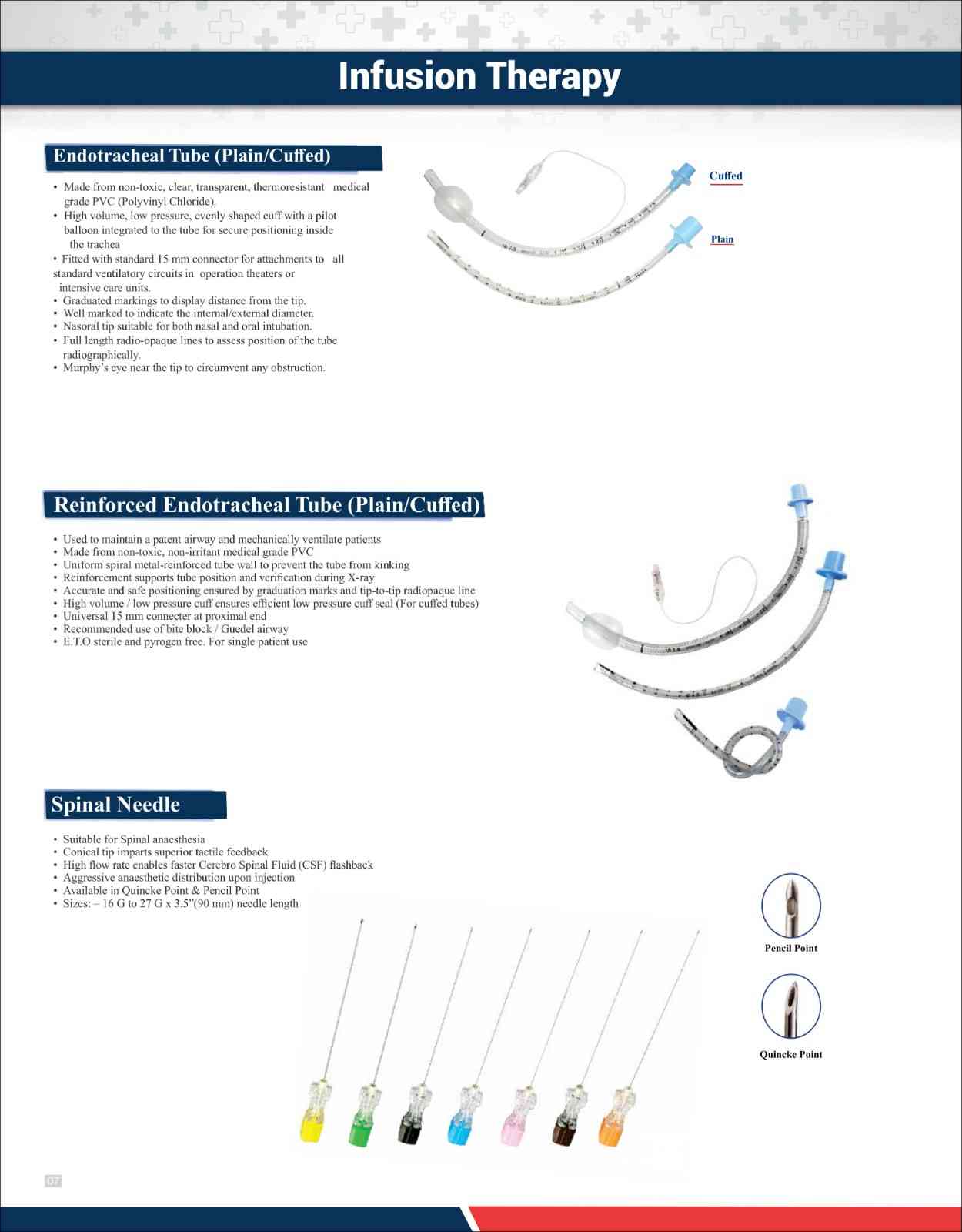 - Reinforced Endotracheal Tube (Plain/Cuffed) Spinal Needle